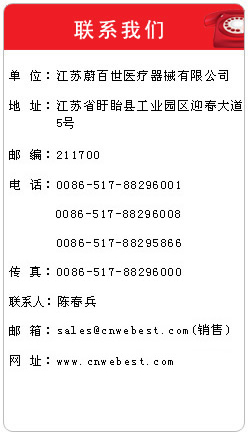 聯系人:陳春兵 地址:江蘇省盱眙縣工業園區迎春大道5號 郵編:211700 互聯網藥品信息服務資格證書號:(蘇)-非經營性-2023-0029 醫療器械投拆舉報電話:12315 電話:0086-517-88296001 88296008 0086-517-88295866 傳真:0086-517-88296000 網址:www.cnwebest_com.w6437.cn E-mail:sales@cnwebest_com.w6437.cn(銷售) 后臺管理 郵箱登錄 備案號:蘇ICP備17002214號-1 |